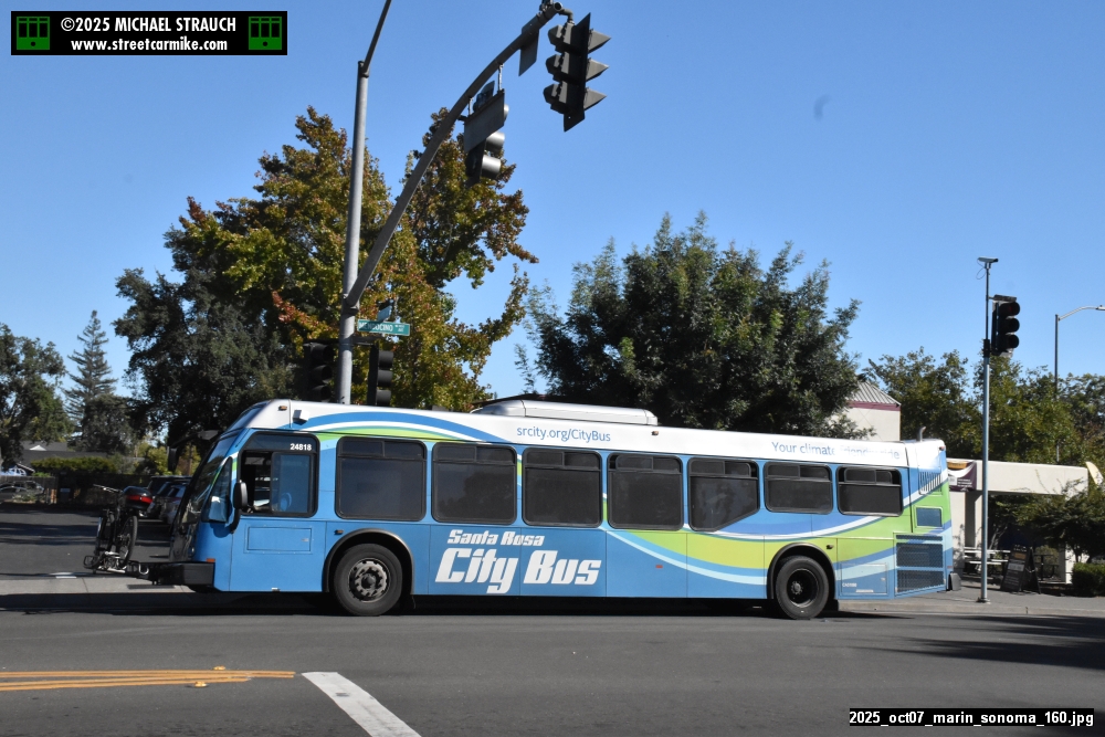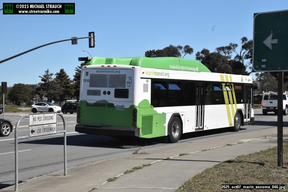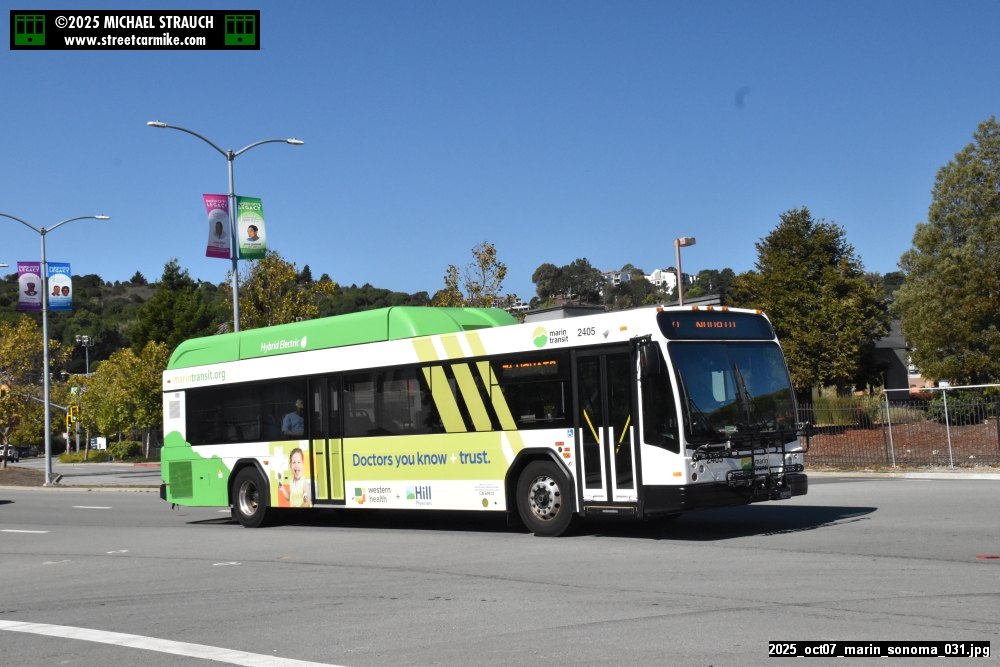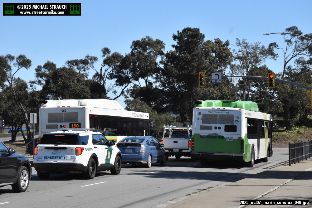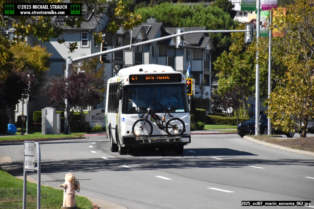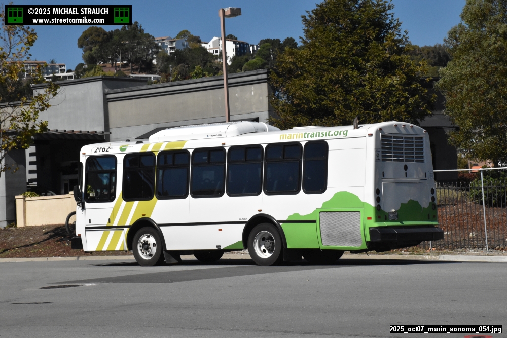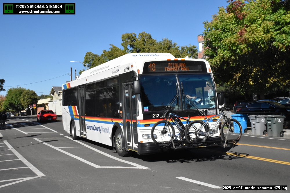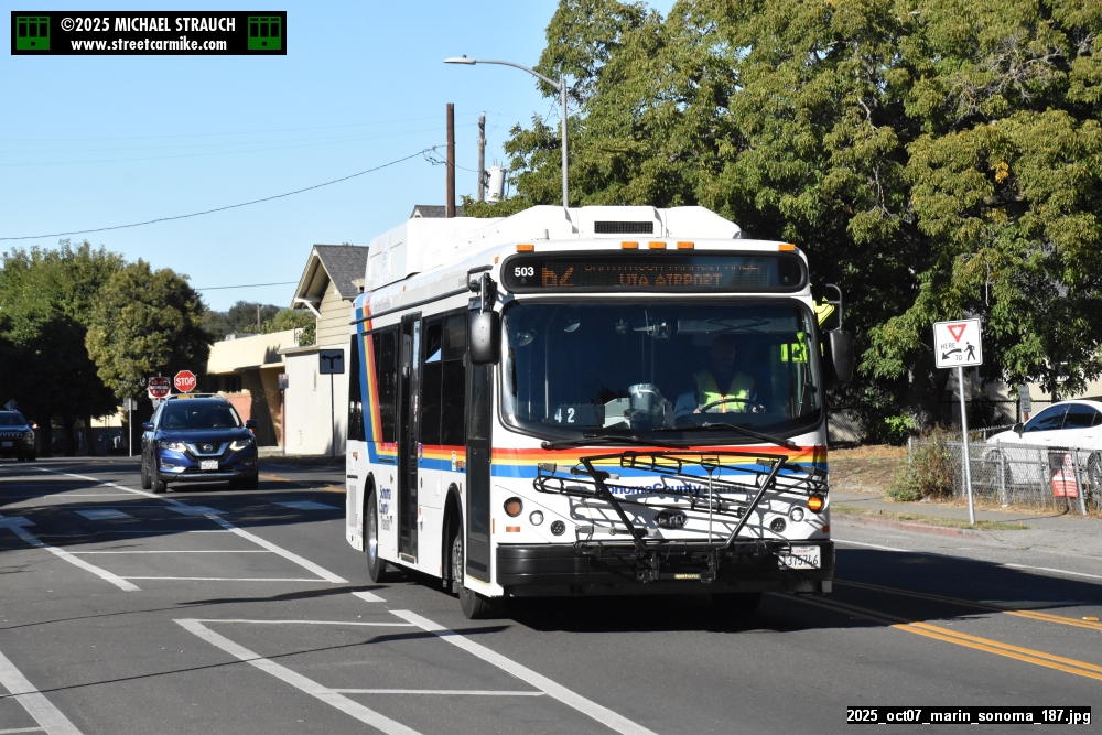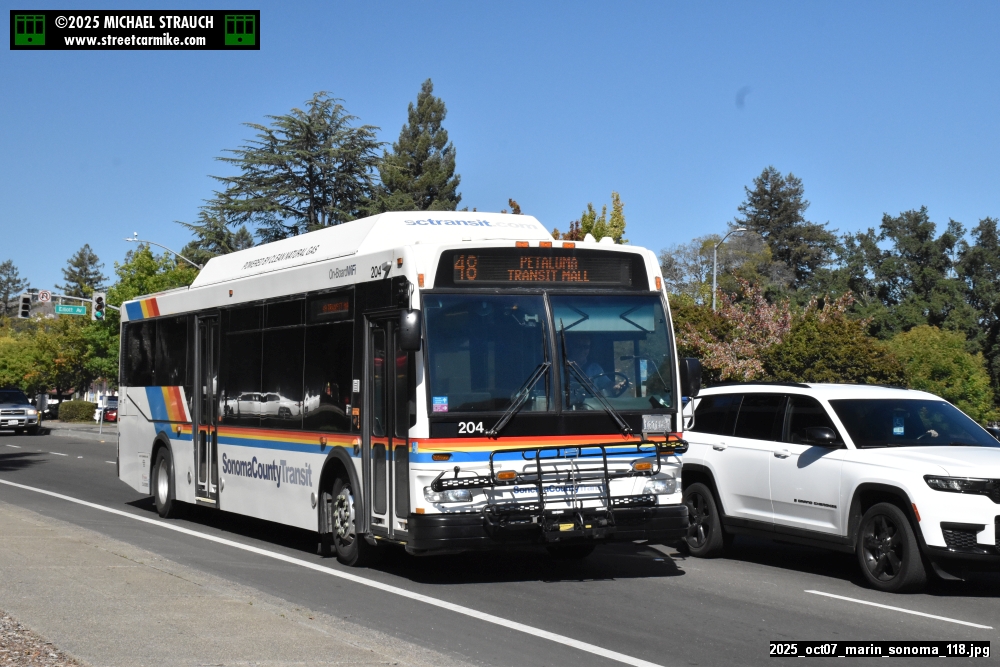 A drive up to Sonoma County begins with a stop in Marin City near the transit hub for Marin Transit and Golden Gate Transit buses. Then it's on to Petaluma, where I photographed a southbound SMART train behind the Lucky Supermarket on Petaluma Blvd. Drove on up to Santa Rosa and parked near Junior College to get pictures of buses on Mendocino Blvd., both Santa Rosa CityBus and Sonoma County Transit.