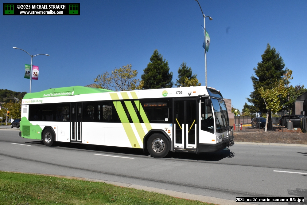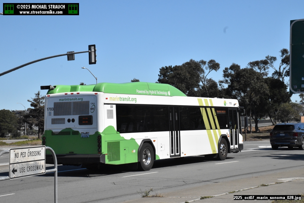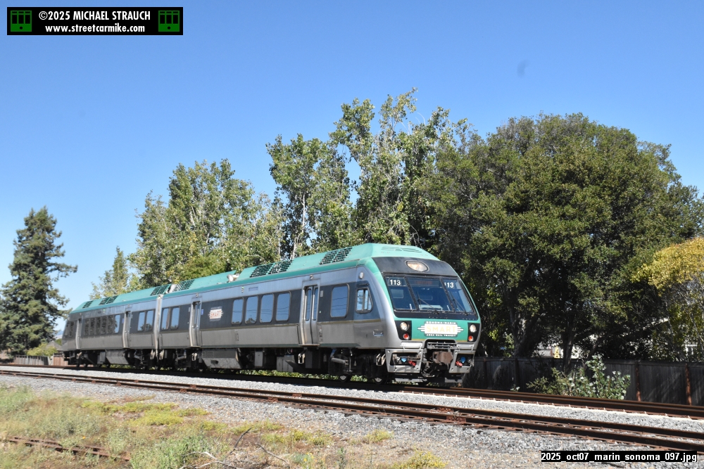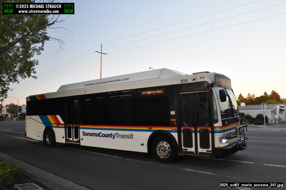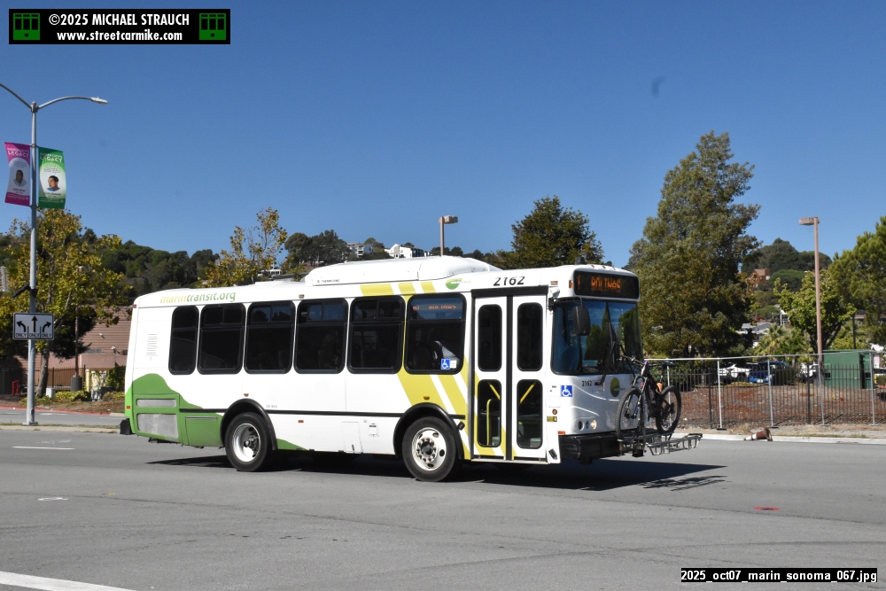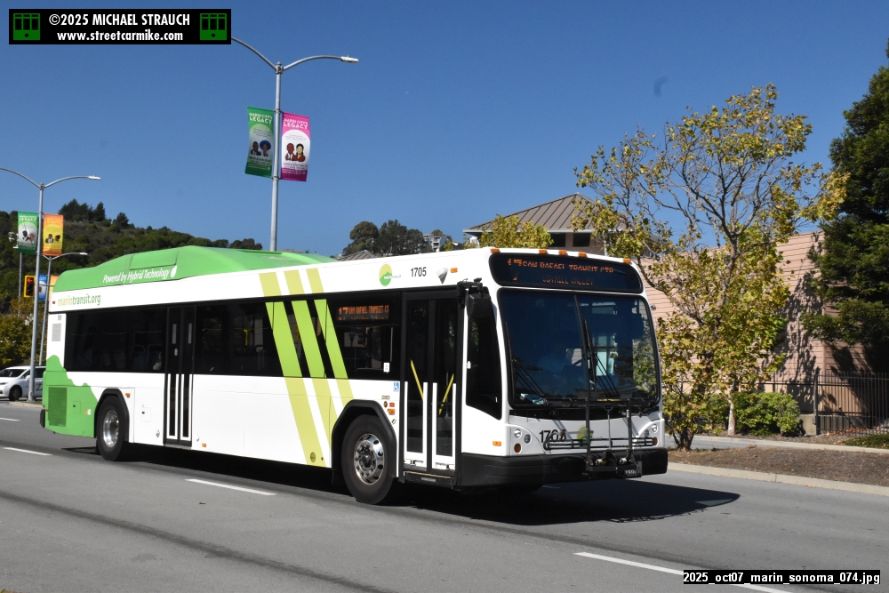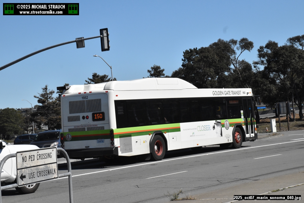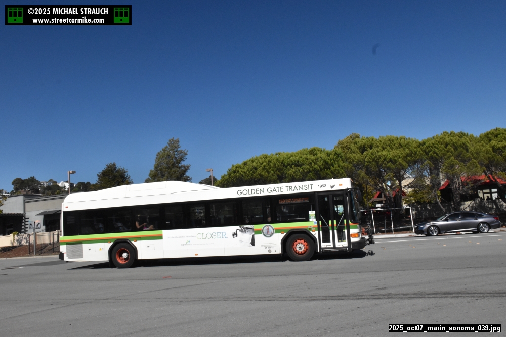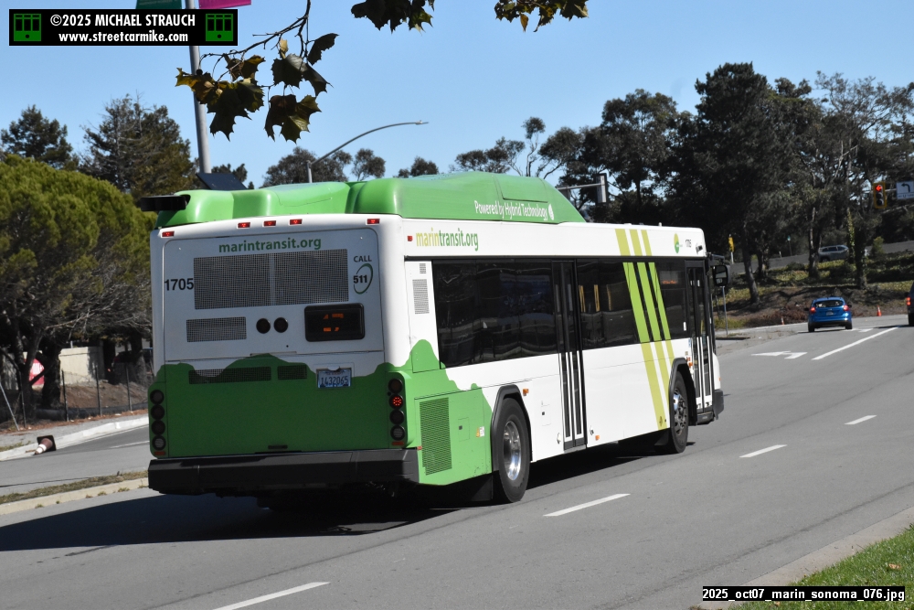 A drive up to Sonoma County begins with a stop in Marin City near the transit hub for Marin Transit and Golden Gate Transit buses. Then it's on to Petaluma, where I photographed a southbound SMART train behind the Lucky Supermarket on Petaluma Blvd. Drove on up to Santa Rosa and parked near Junior College to get pictures of buses on Mendocino Blvd., both Santa Rosa CityBus and Sonoma County Transit.