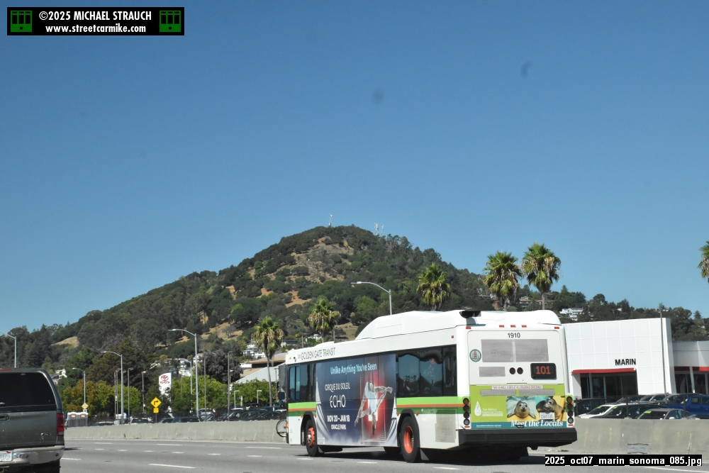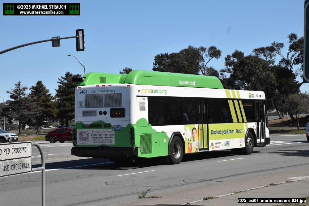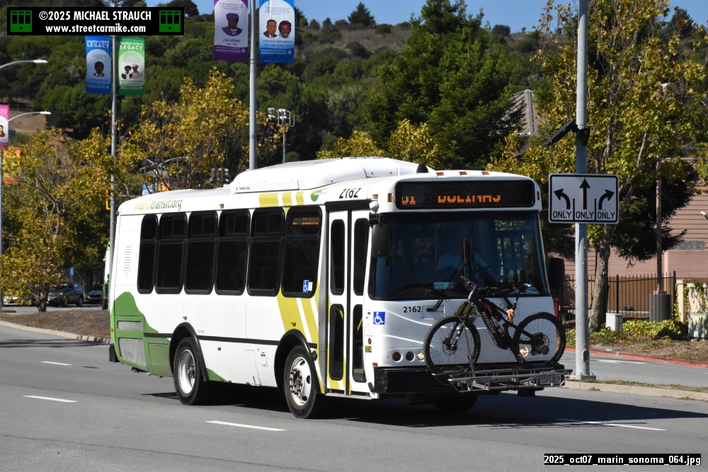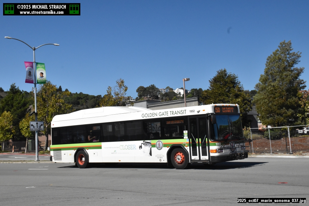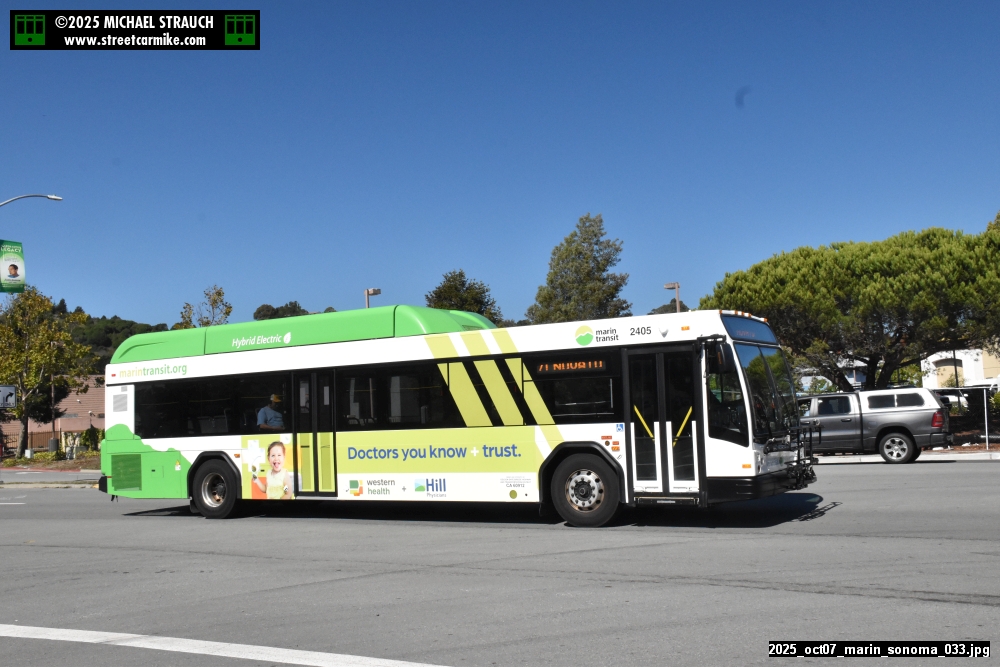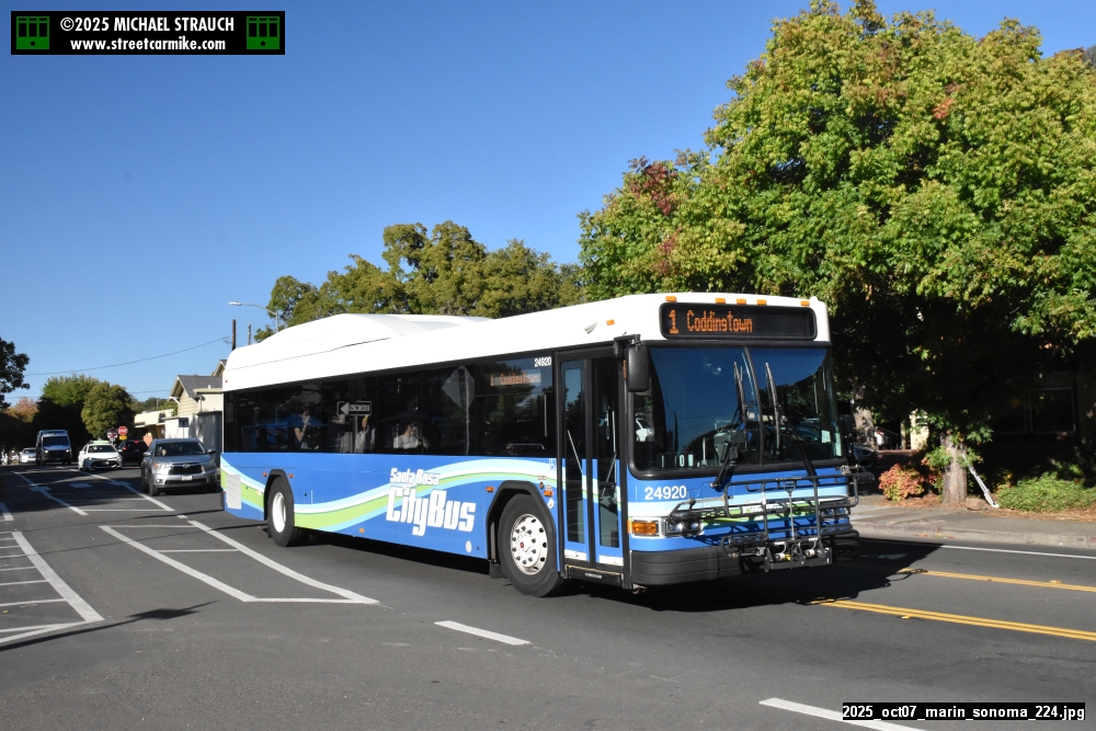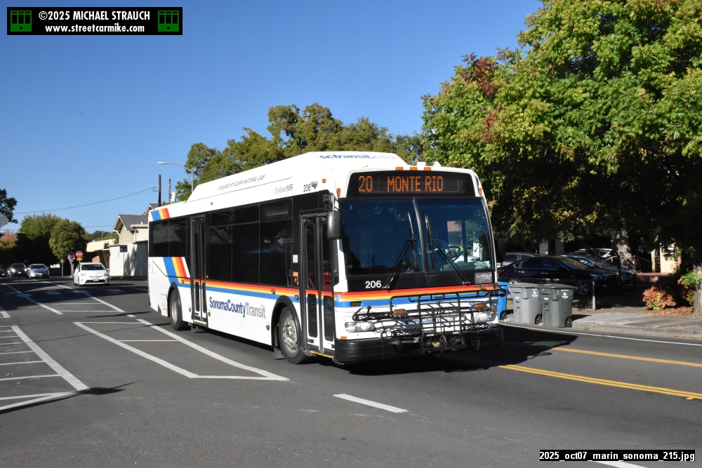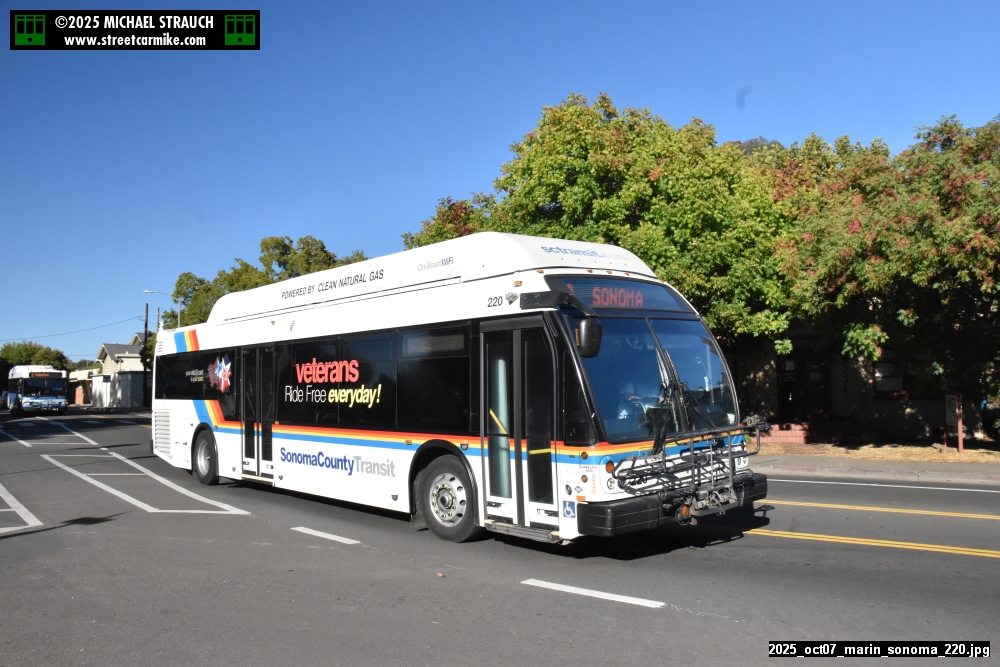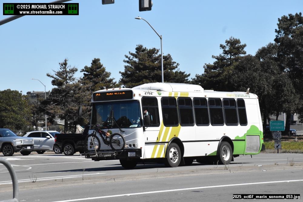 A drive up to Sonoma County begins with a stop in Marin City near the transit hub for Marin Transit and Golden Gate Transit buses. Then it's on to Petaluma, where I photographed a southbound SMART train behind the Lucky Supermarket on Petaluma Blvd. Drove on up to Santa Rosa and parked near Junior College to get pictures of buses on Mendocino Blvd., both Santa Rosa CityBus and Sonoma County Transit.