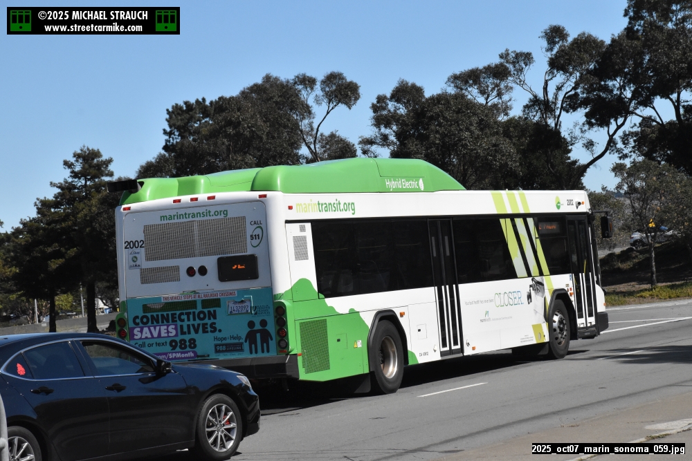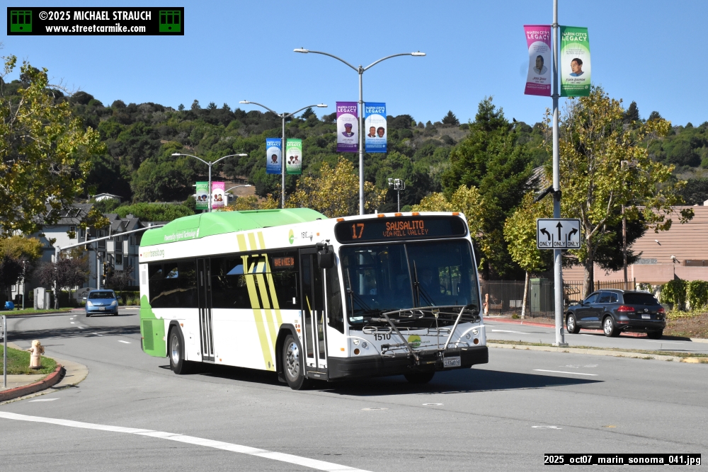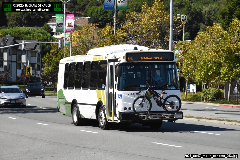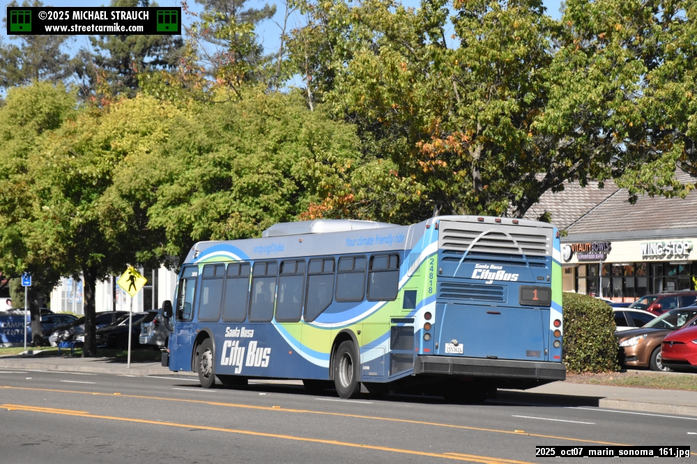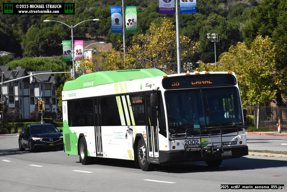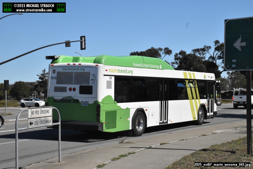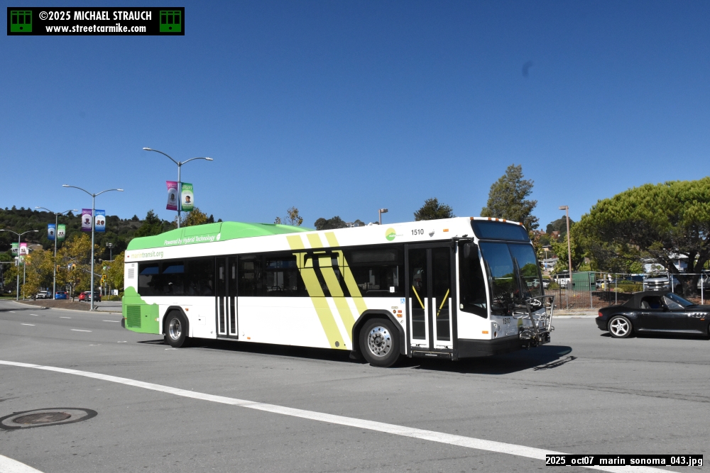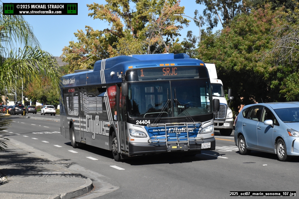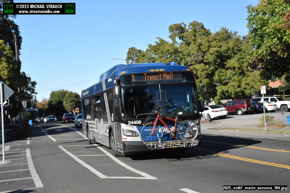 A drive up to Sonoma County begins with a stop in Marin City near the transit hub for Marin Transit and Golden Gate Transit buses. Then it's on to Petaluma, where I photographed a southbound SMART train behind the Lucky Supermarket on Petaluma Blvd. Drove on up to Santa Rosa and parked near Junior College to get pictures of buses on Mendocino Blvd., both Santa Rosa CityBus and Sonoma County Transit.