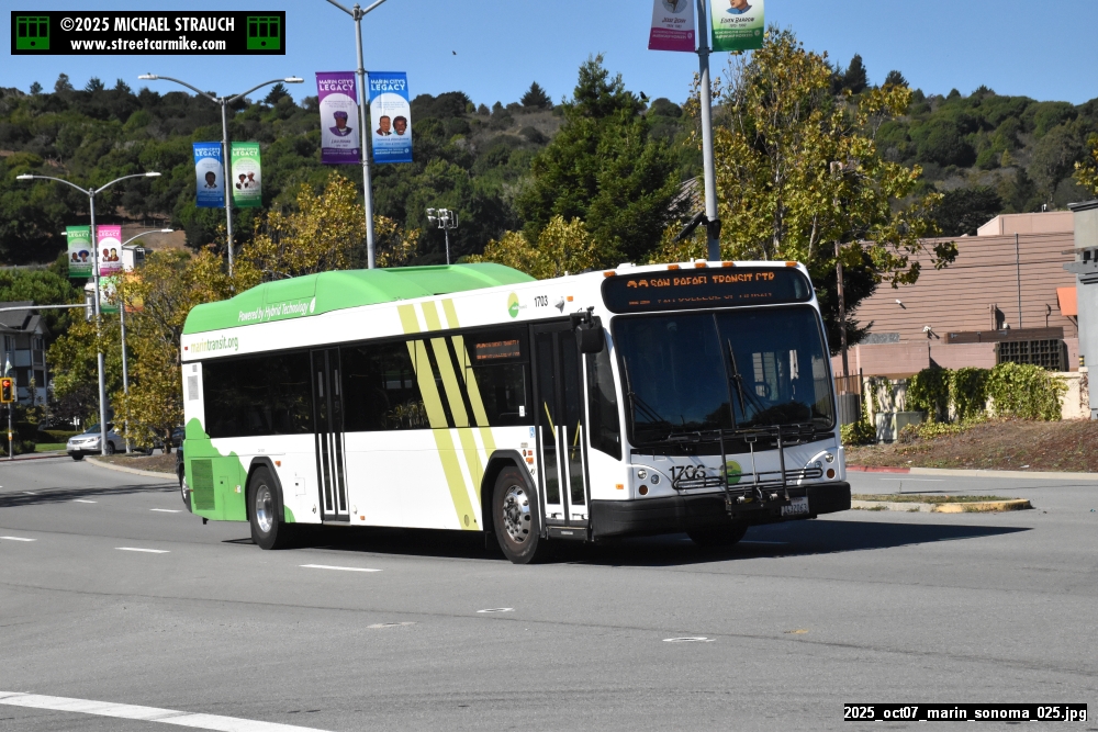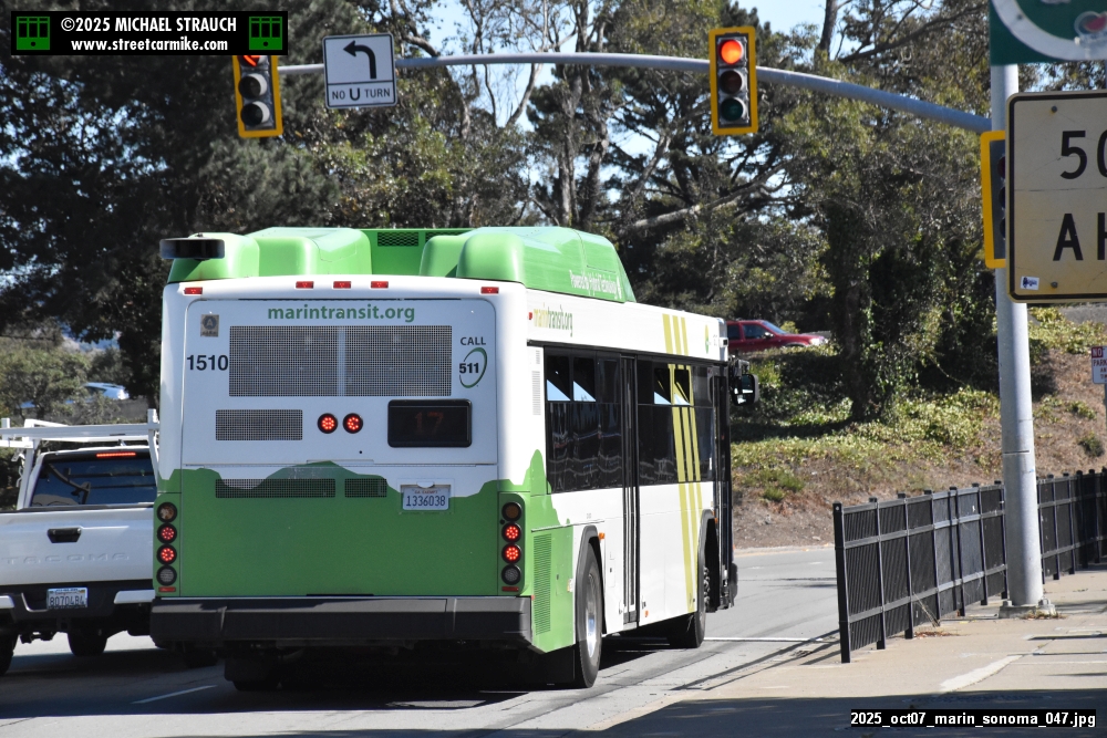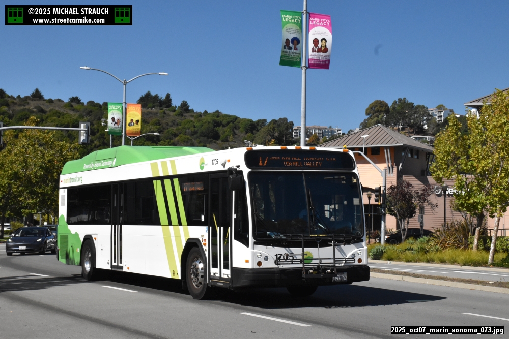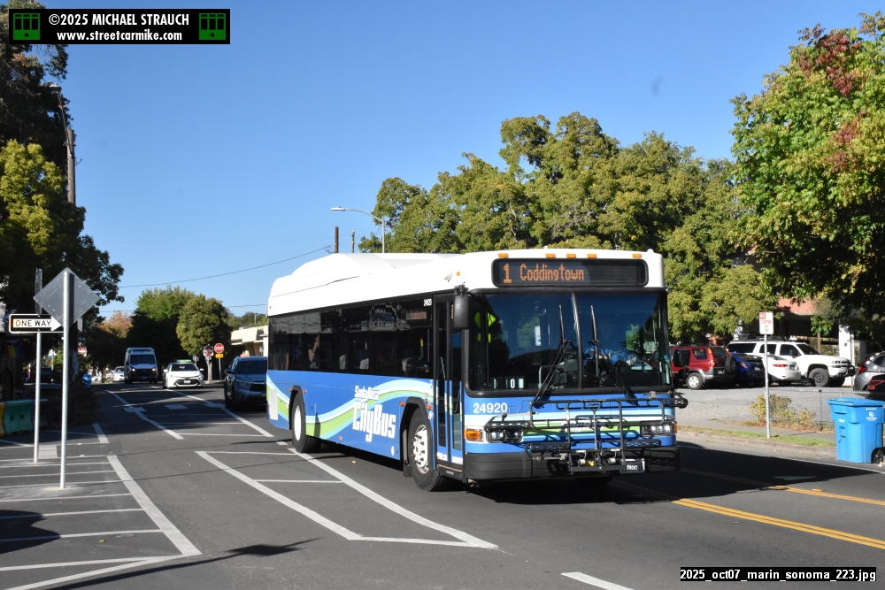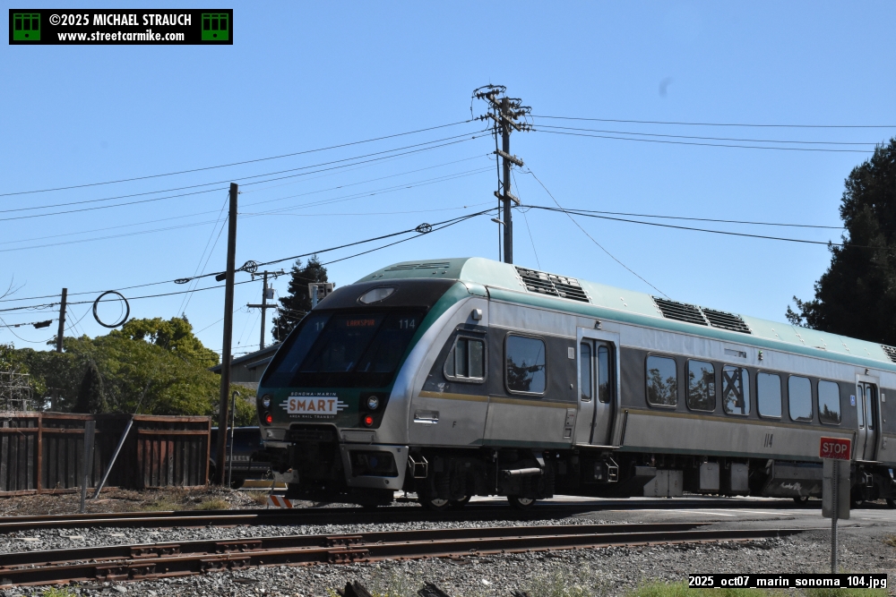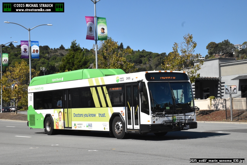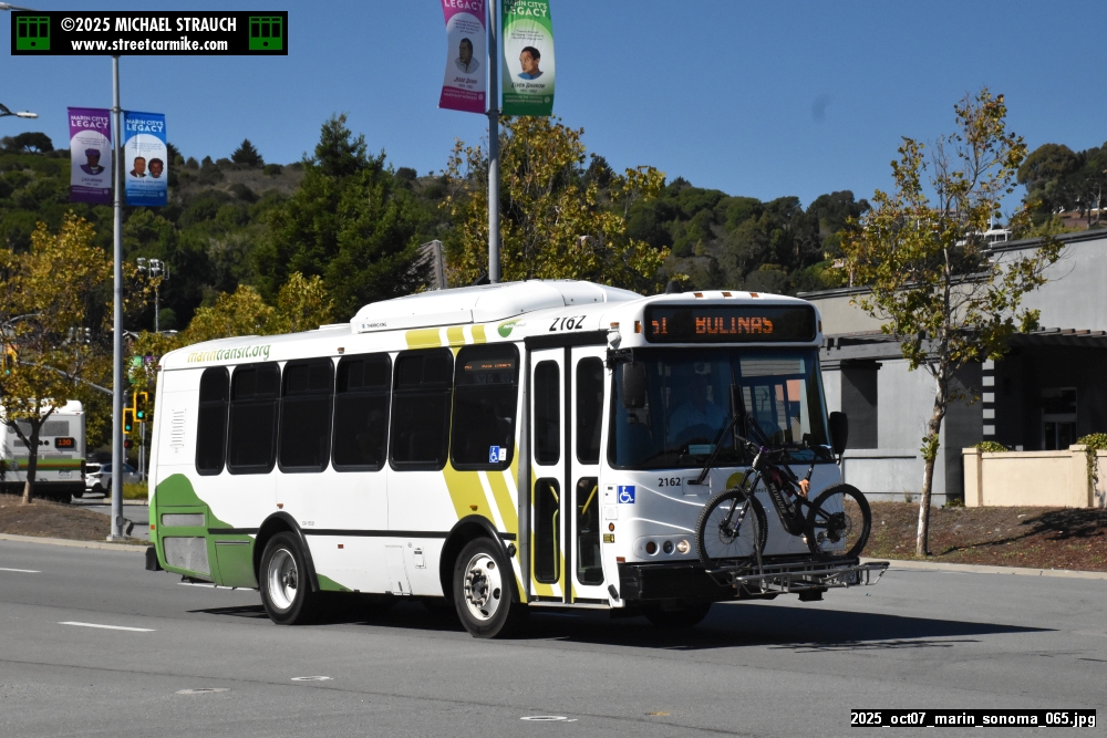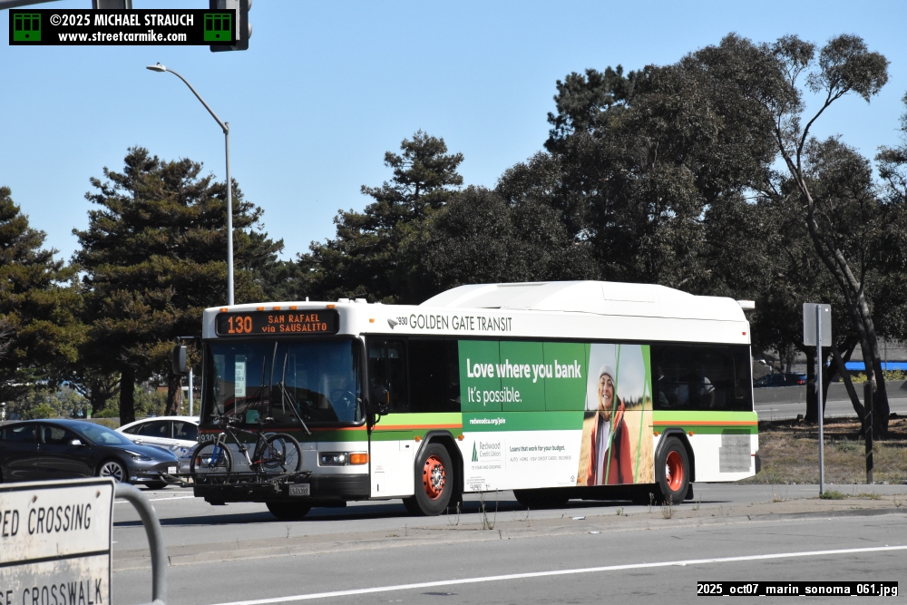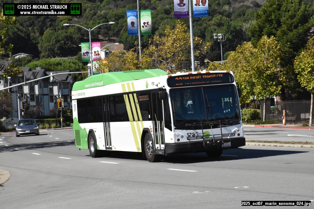 A drive up to Sonoma County begins with a stop in Marin City near the transit hub for Marin Transit and Golden Gate Transit buses. Then it's on to Petaluma, where I photographed a southbound SMART train behind the Lucky Supermarket on Petaluma Blvd. Drove on up to Santa Rosa and parked near Junior College to get pictures of buses on Mendocino Blvd., both Santa Rosa CityBus and Sonoma County Transit.