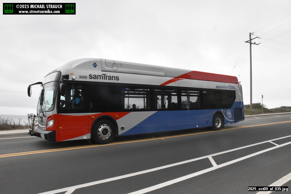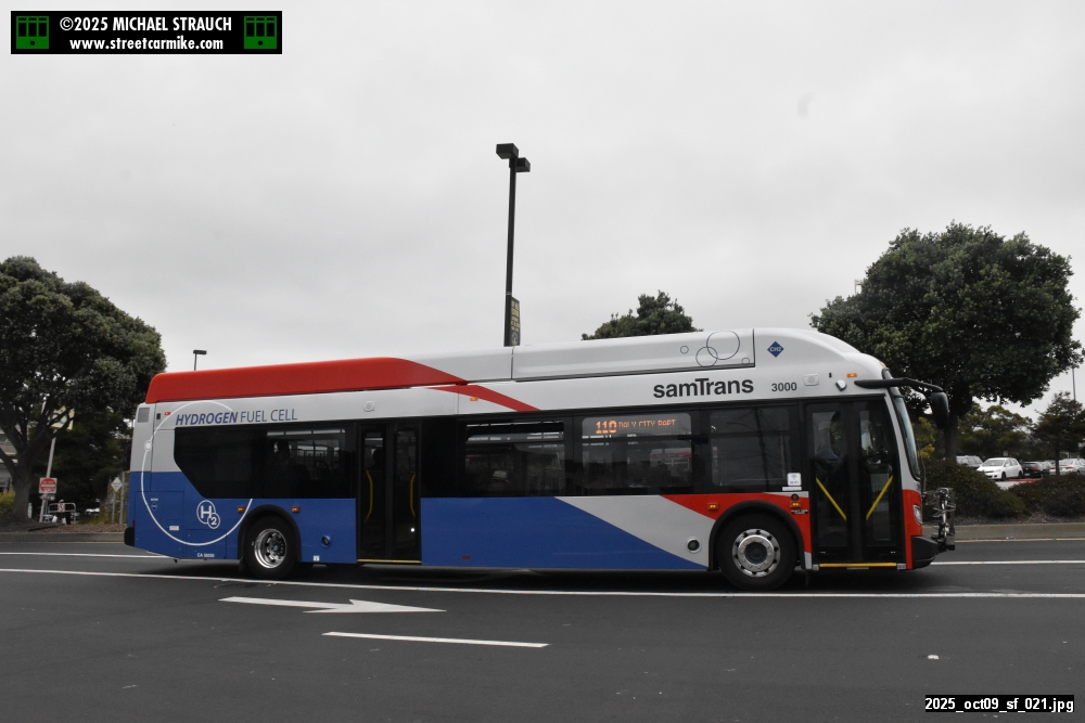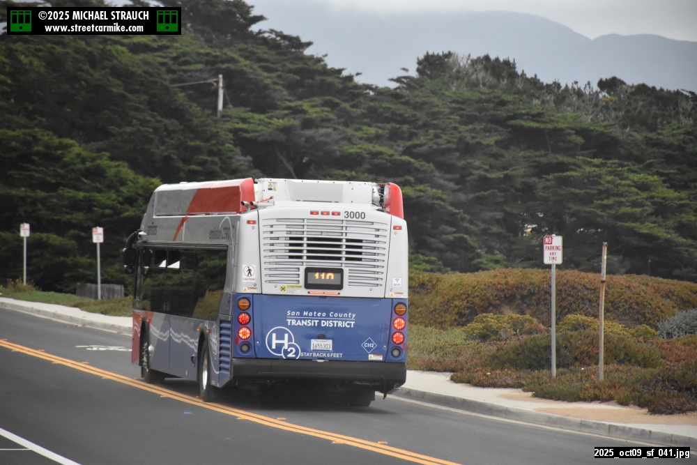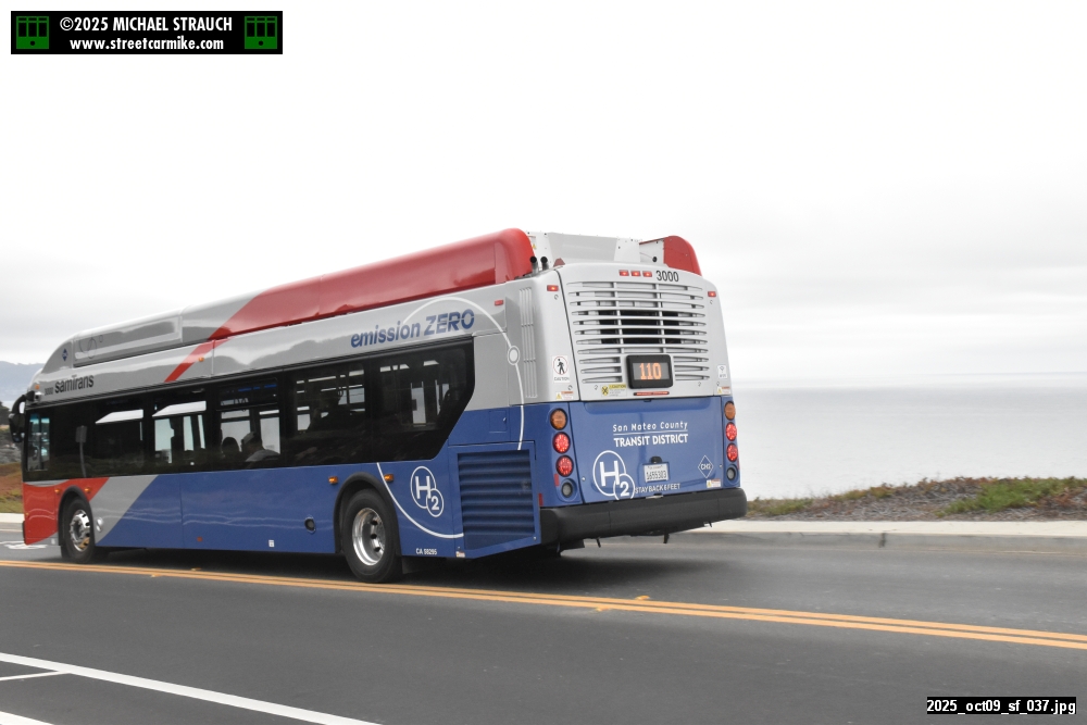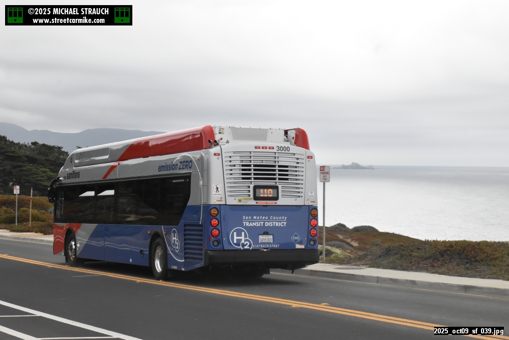 After visiting for another appointment in Redwood City, and the lunch that followed, I drove to Daly City and Pacifica to track SamTrans hydrogen electric bus 3000 on the 110 route.