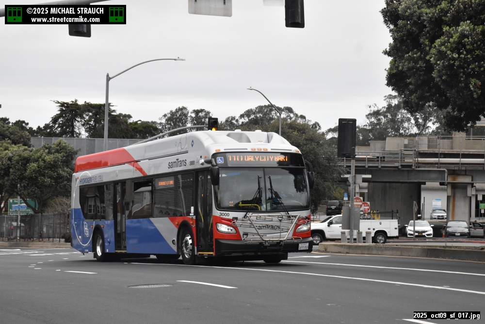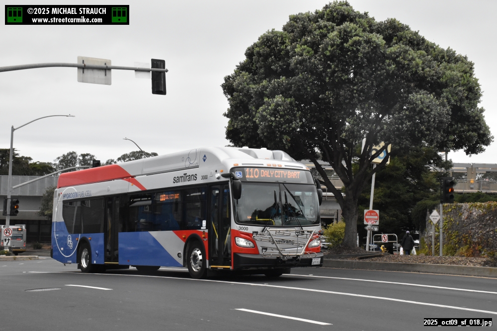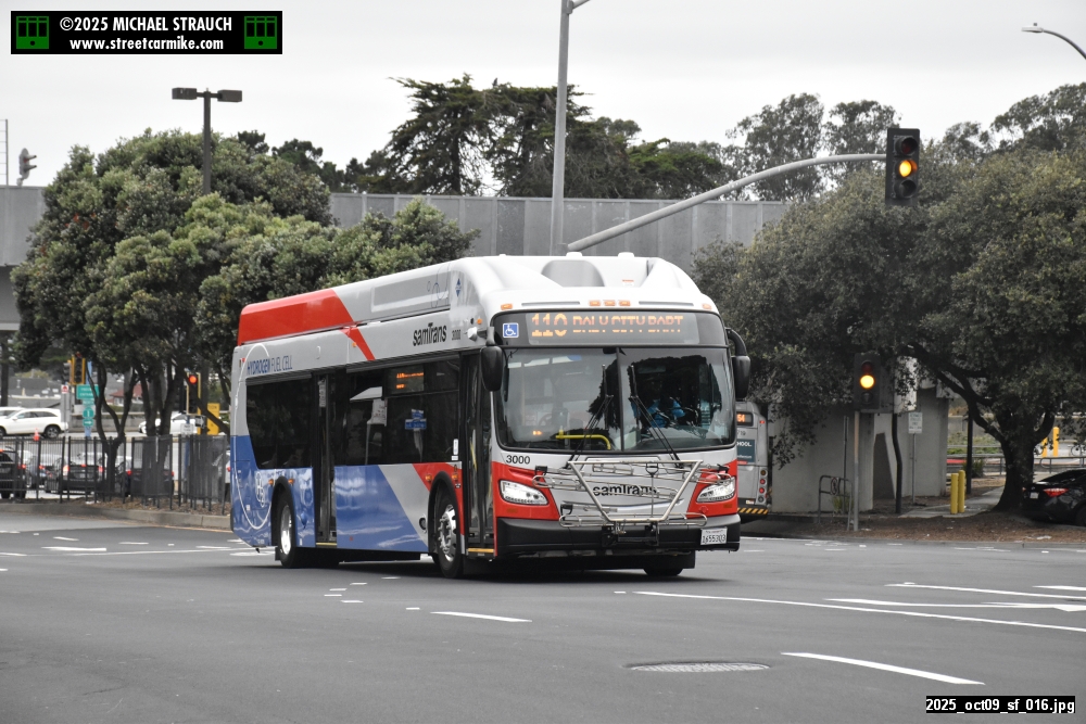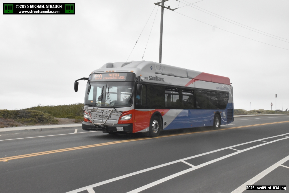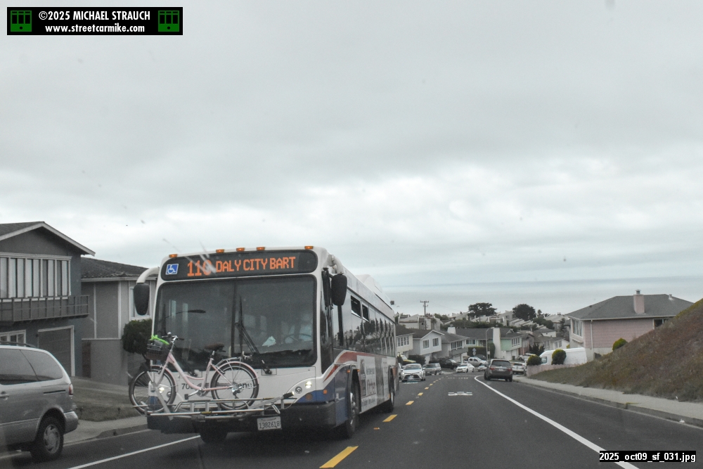 After visiting for another appointment in Redwood City, and the lunch that followed, I drove to Daly City and Pacifica to track SamTrans hydrogen electric bus 3000 on the 110 route.