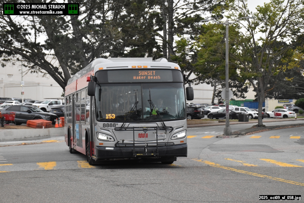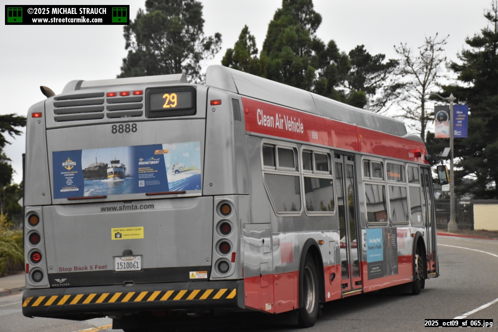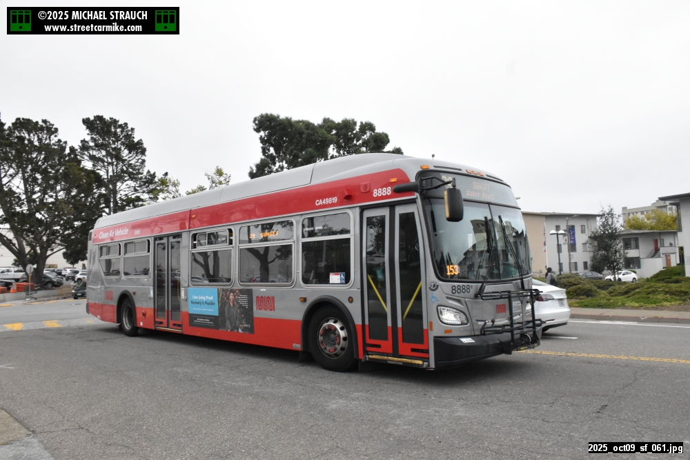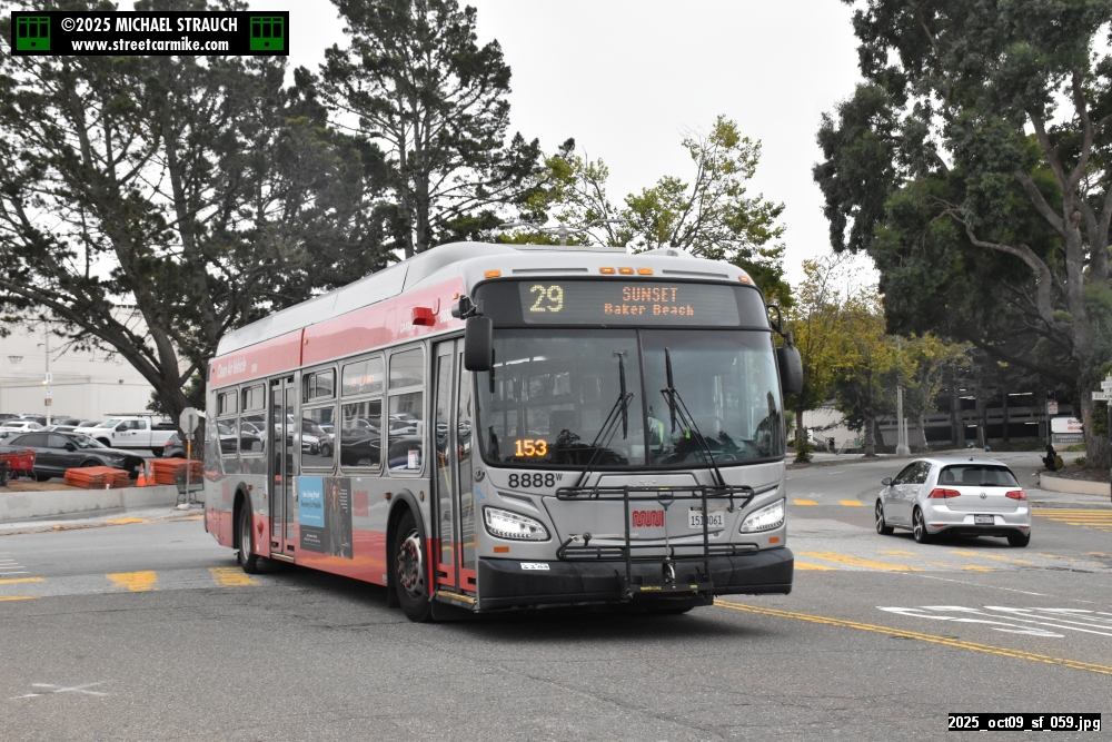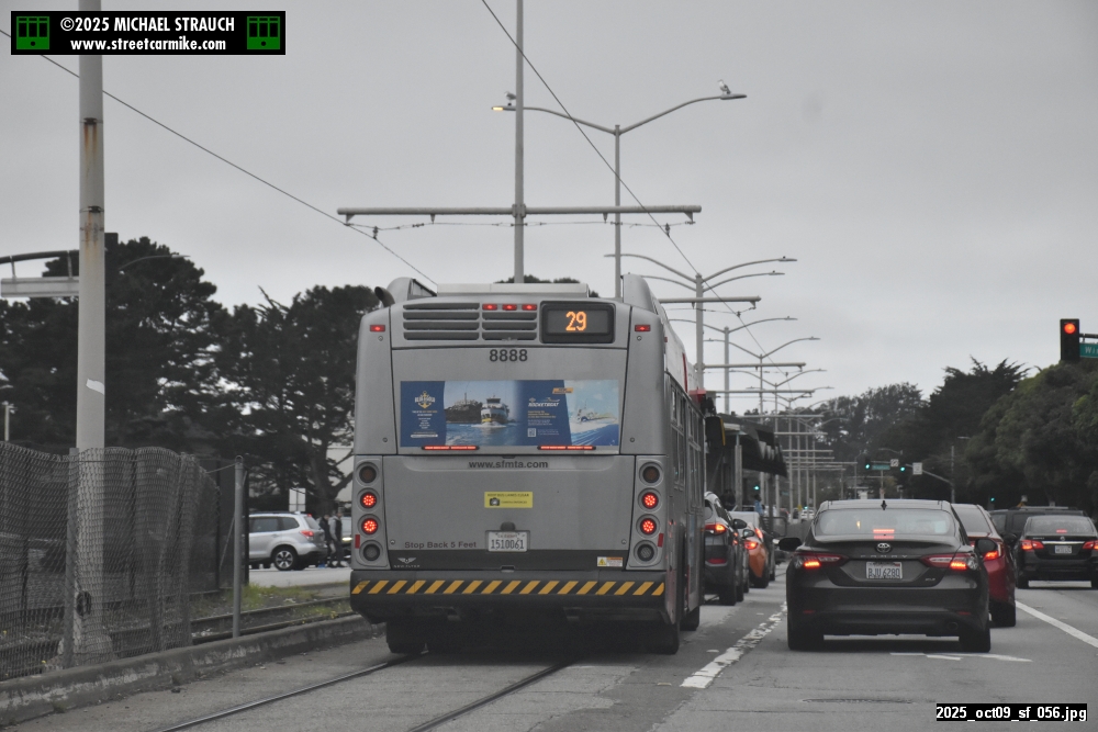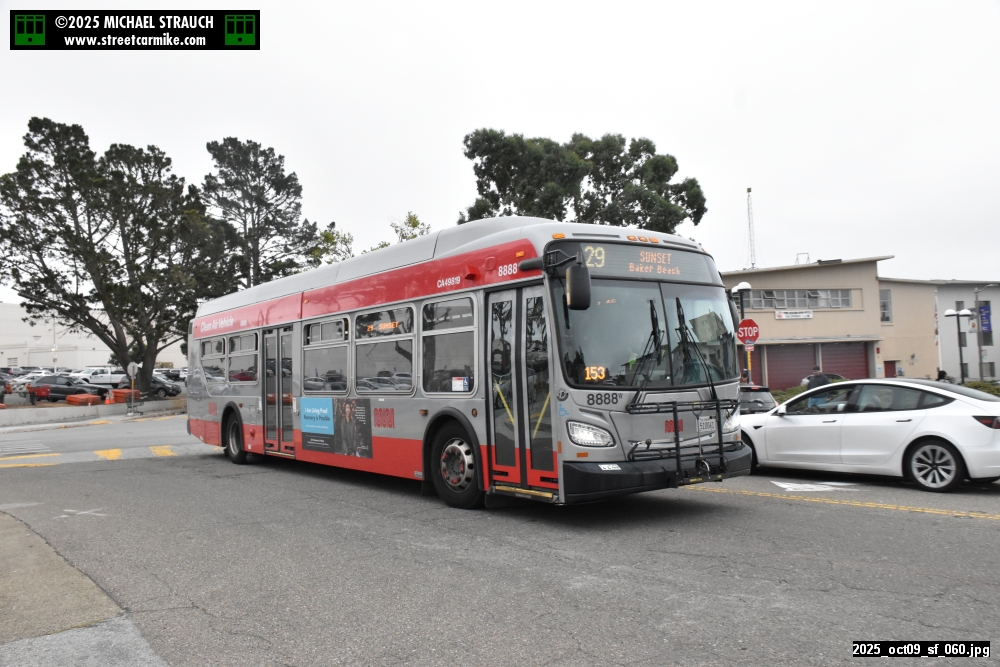 Stopped by the Ocean View Laundromat on 19th Ave. in San Francisco. As the dryer started, I drove to the 29 Sunset line on Garfield St. and then on Winston Ave. to get more shots of New Flyer 8888.