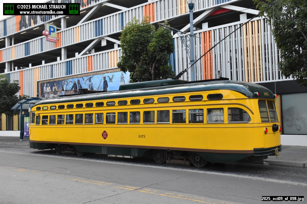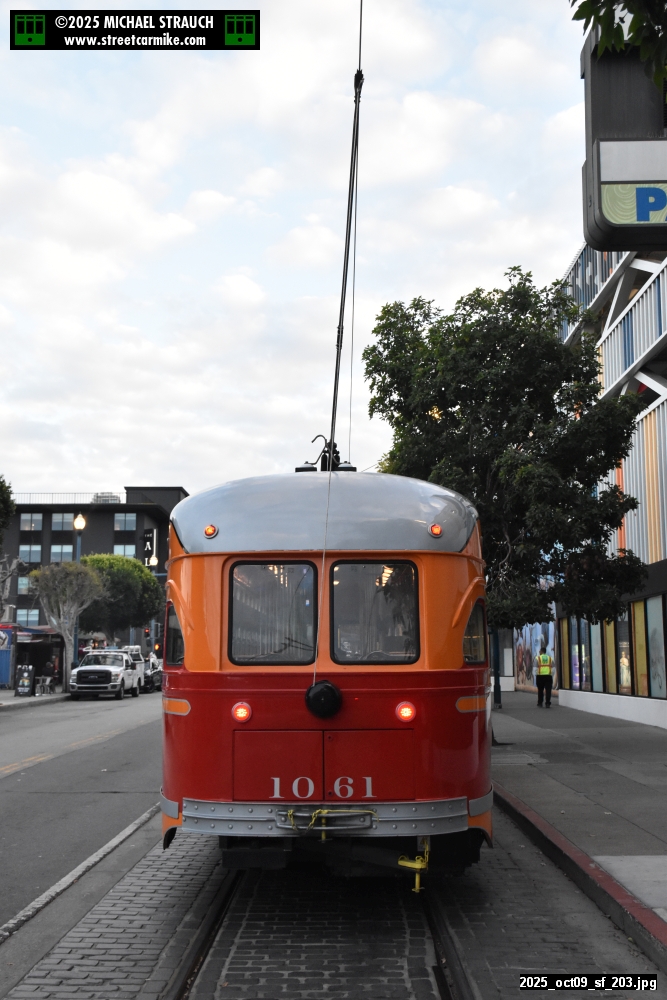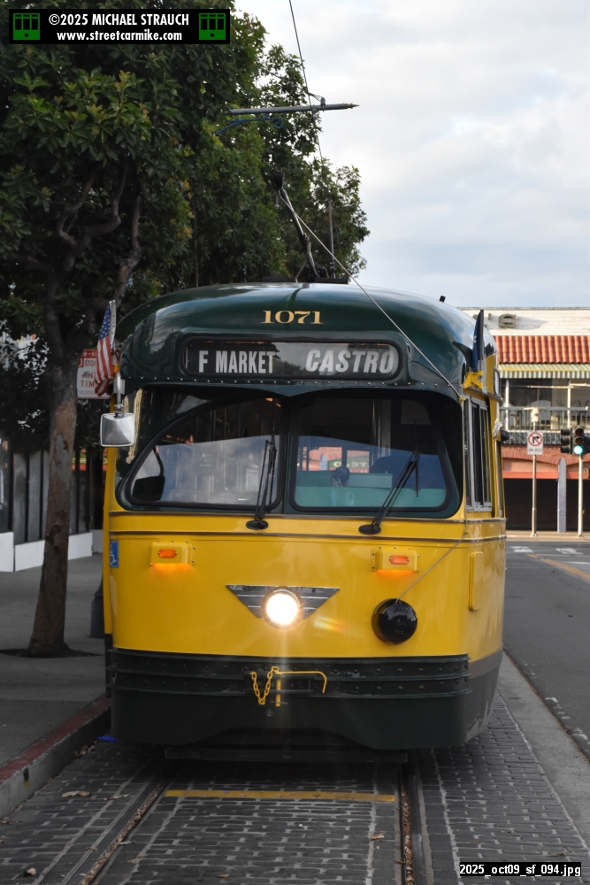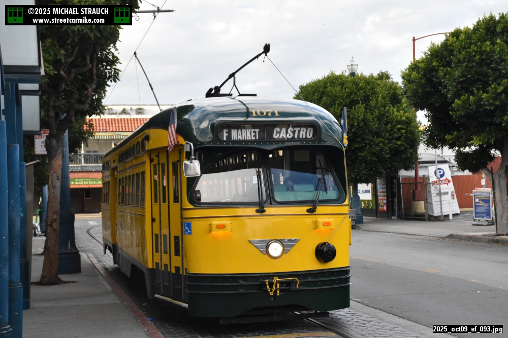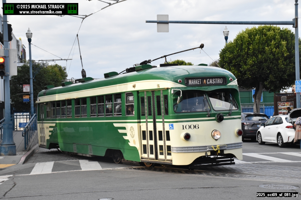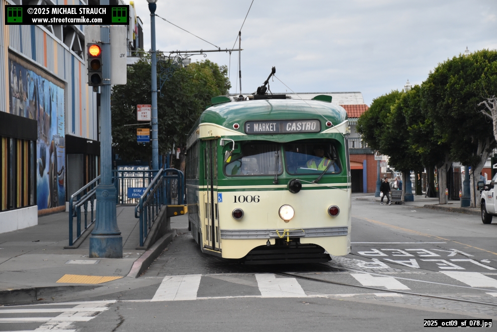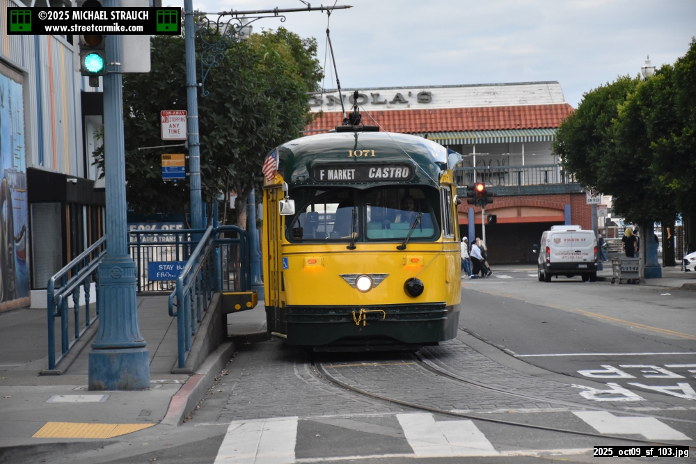 Went up to Jones and Beach Sts. for specific PCC cars on the Market & Wharves line: 1006, 1071, and 1061. Of course, others came and went in front of my camera.