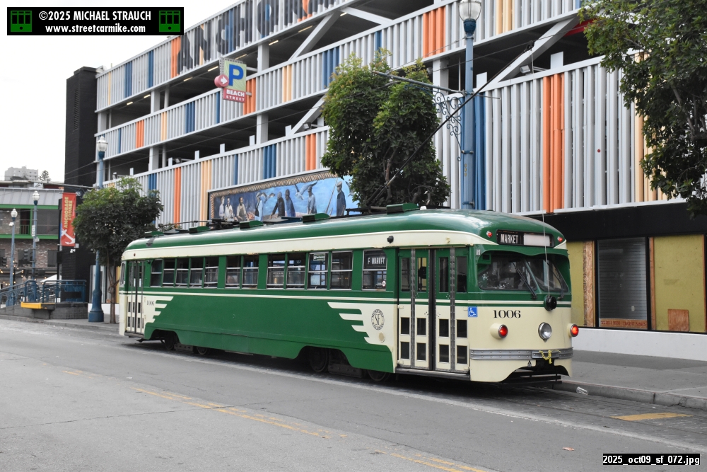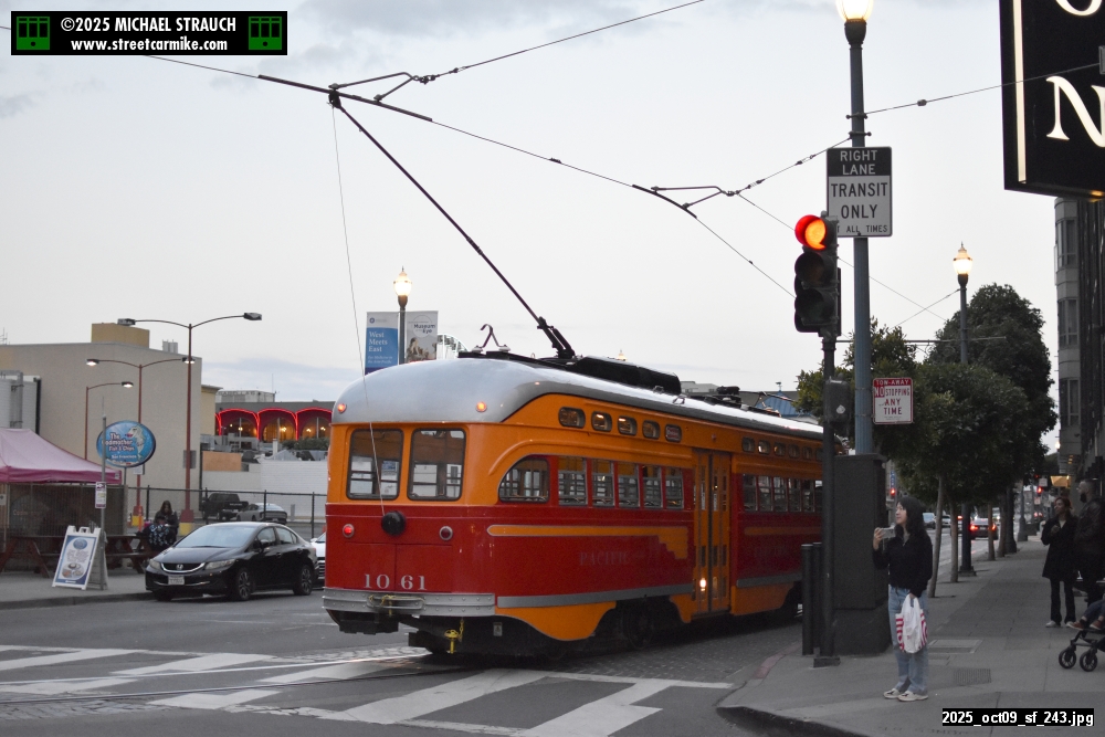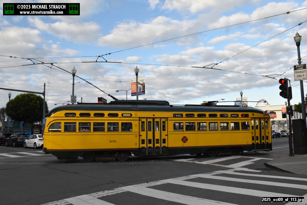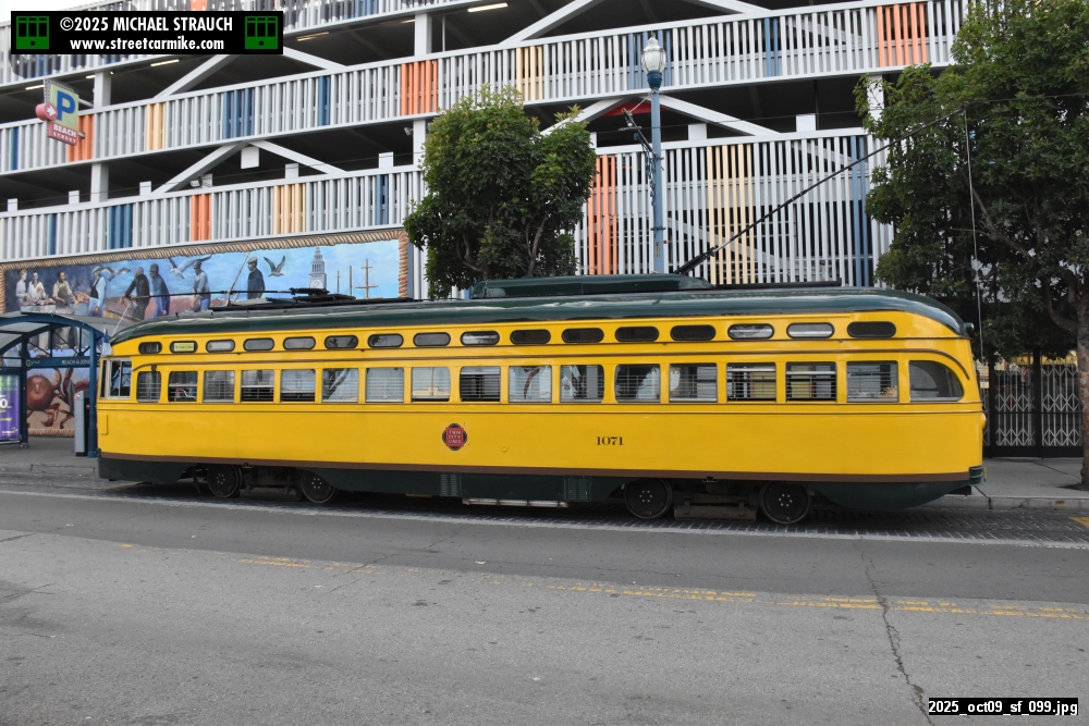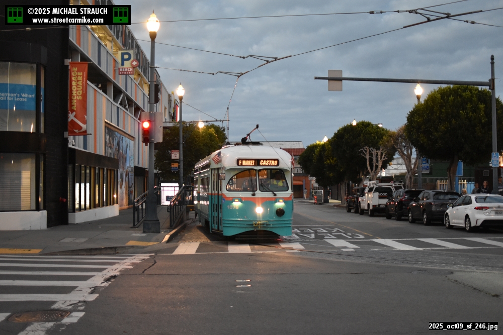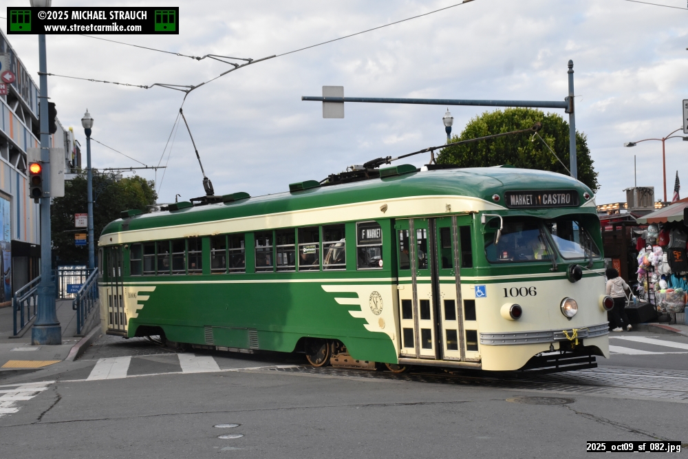 Went up to Jones and Beach Sts. for specific PCC cars on the Market & Wharves line: 1006, 1071, and 1061. Of course, others came and went in front of my camera.