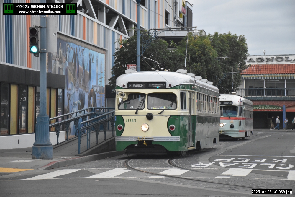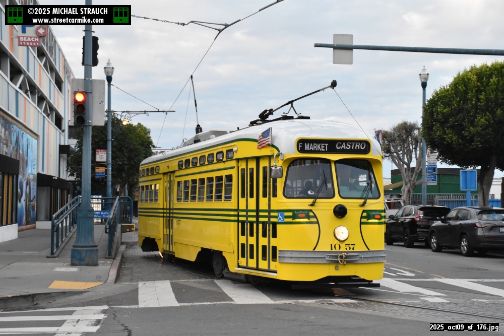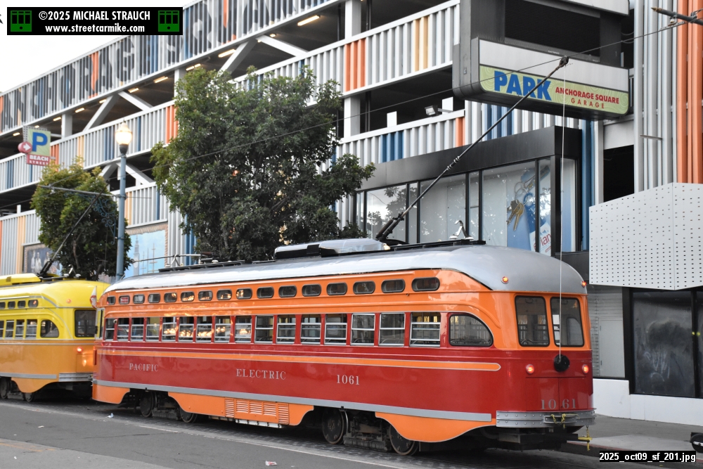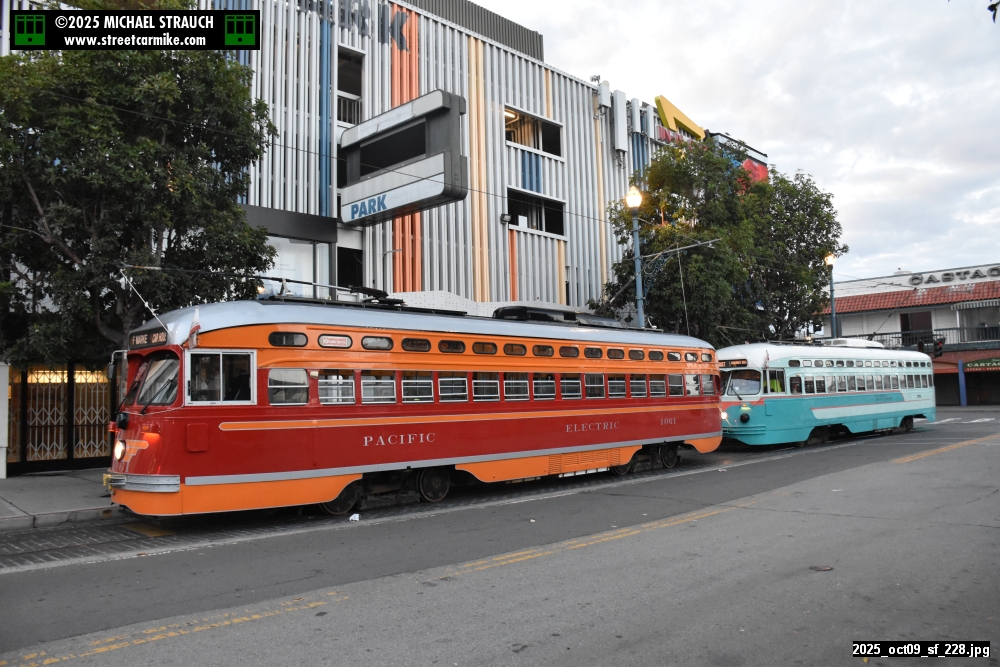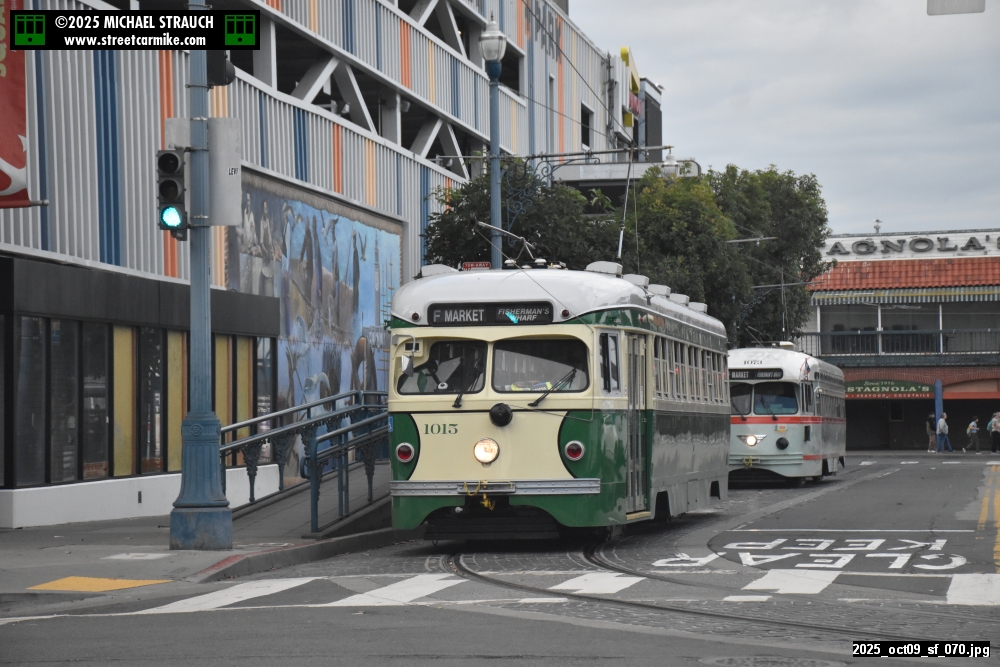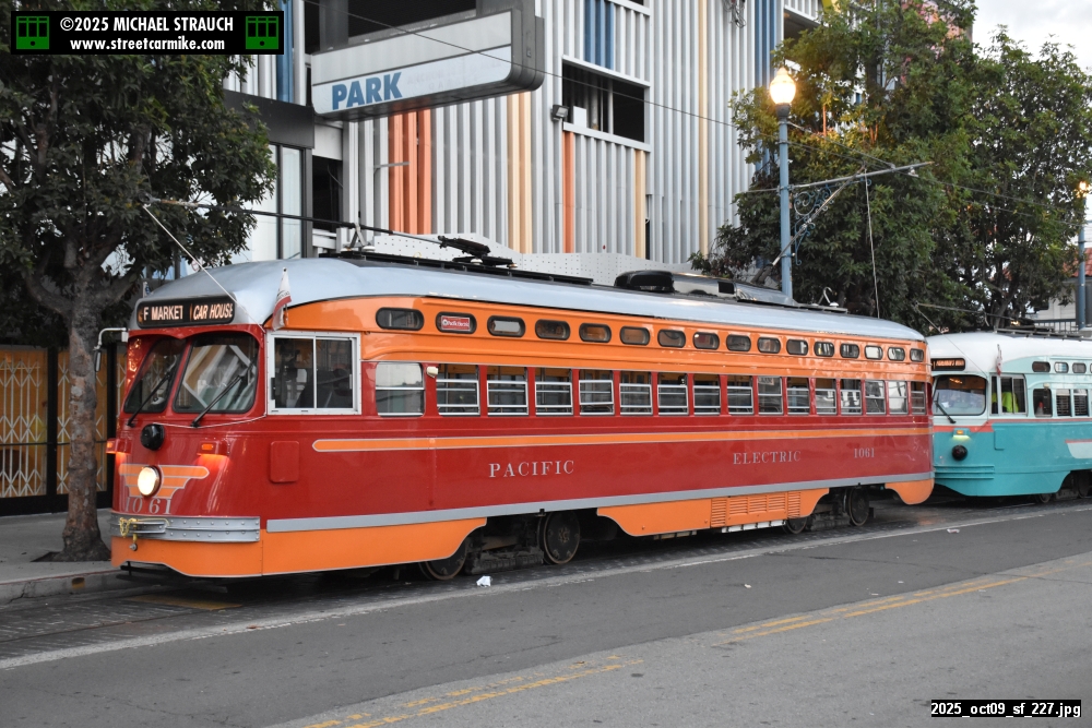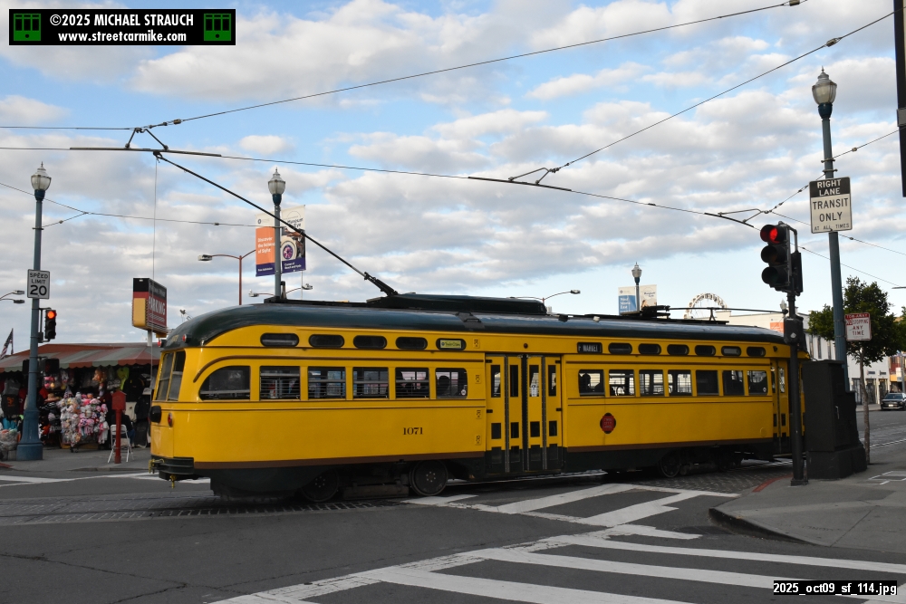 Went up to Jones and Beach Sts. for specific PCC cars on the Market & Wharves line: 1006, 1071, and 1061. Of course, others came and went in front of my camera.