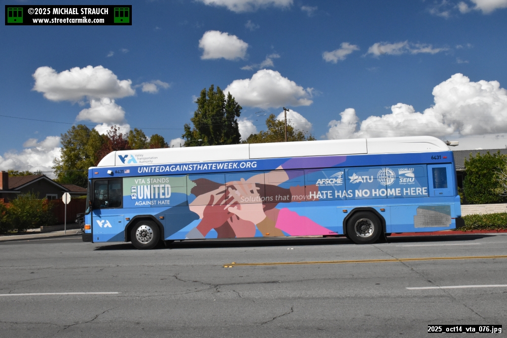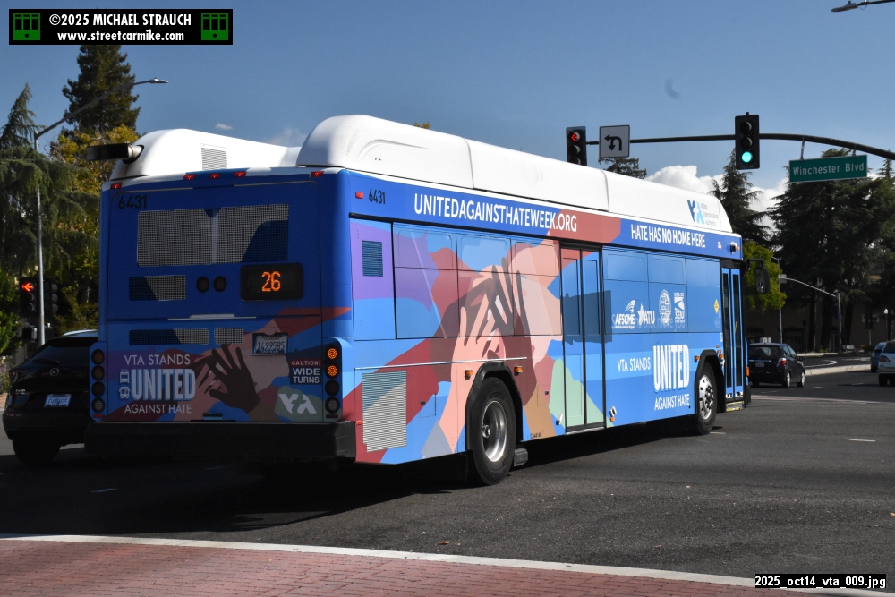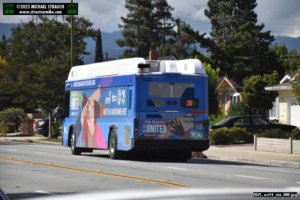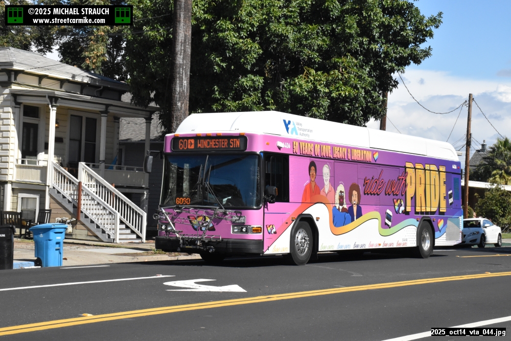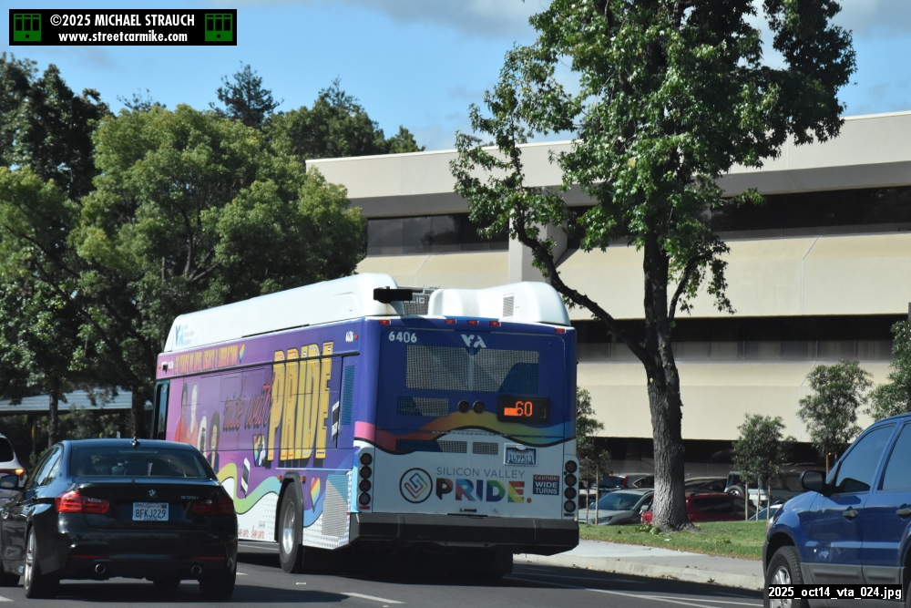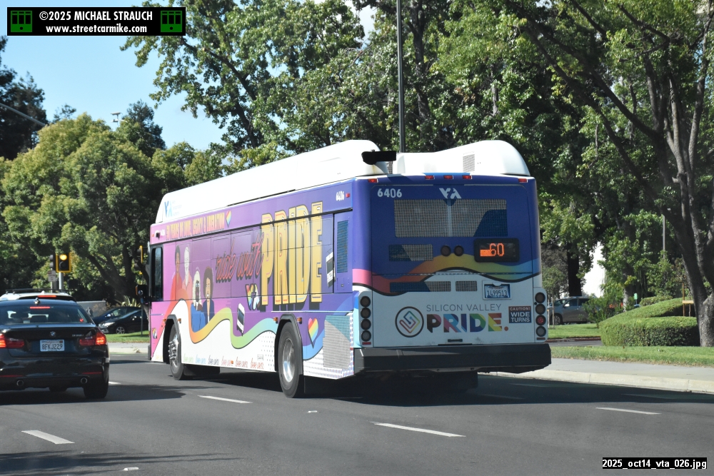 Gillig 6406 (Pride) on the 60 and 6431 (VTA Stands United Against Hate) on the 26. Also got two Capitol Corridor trains