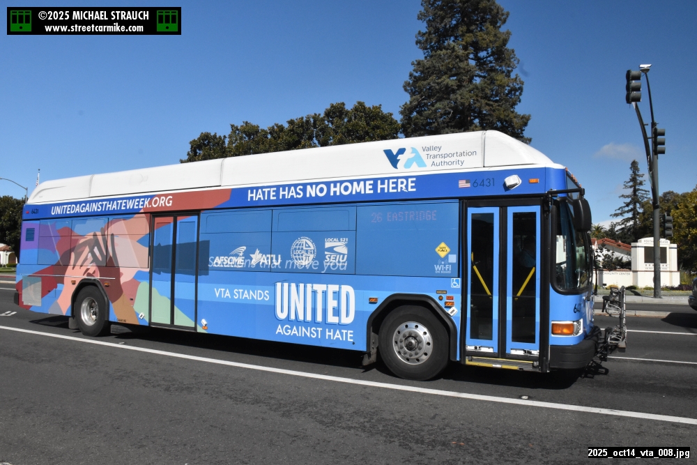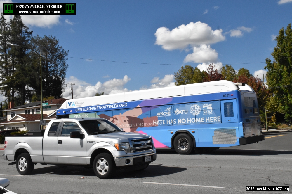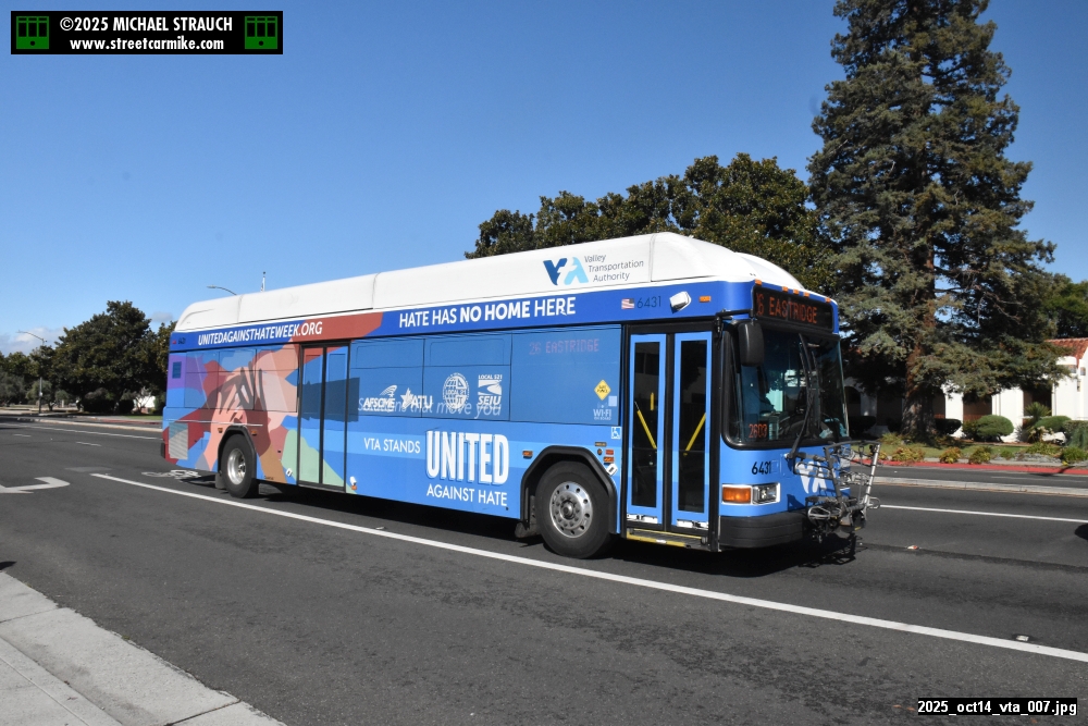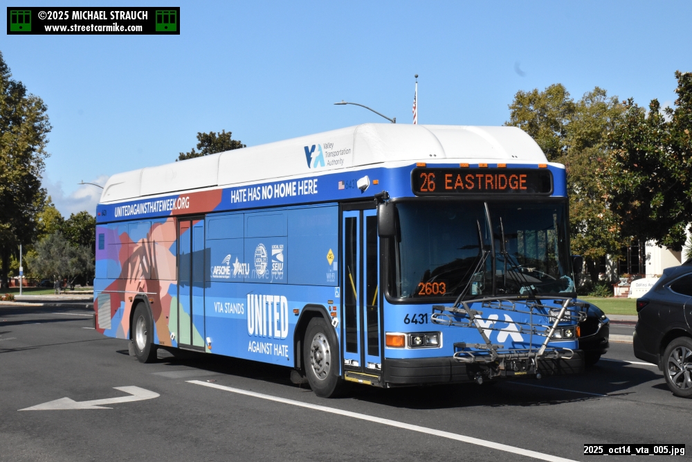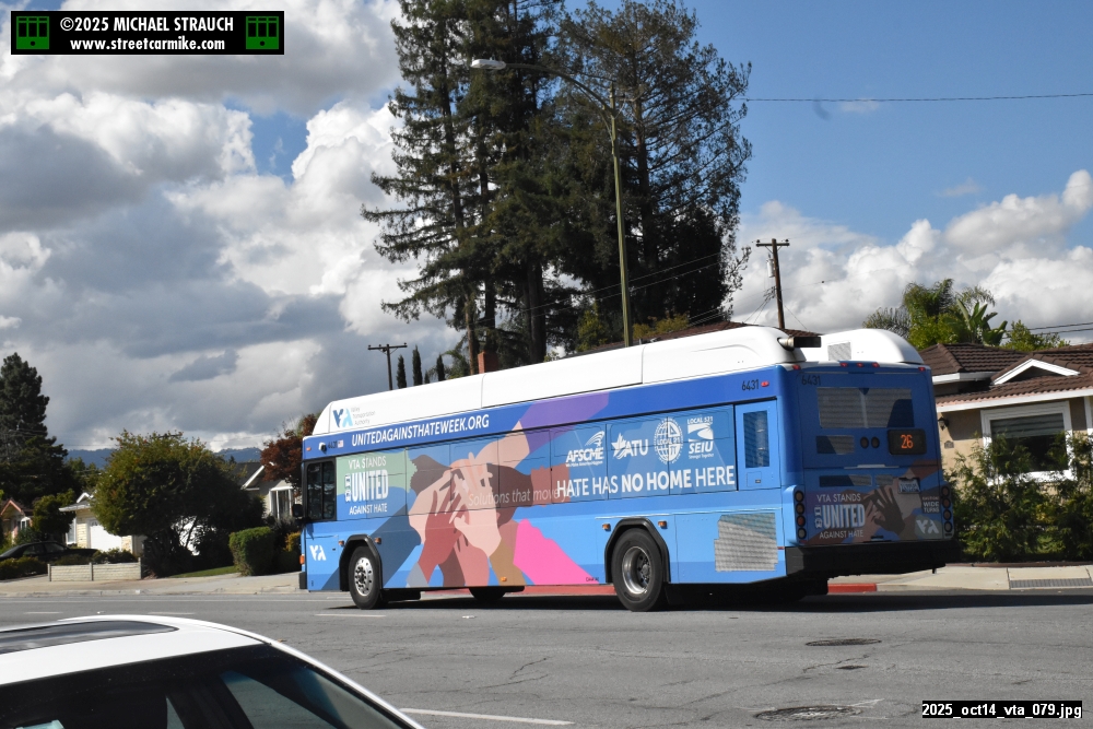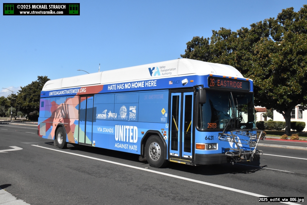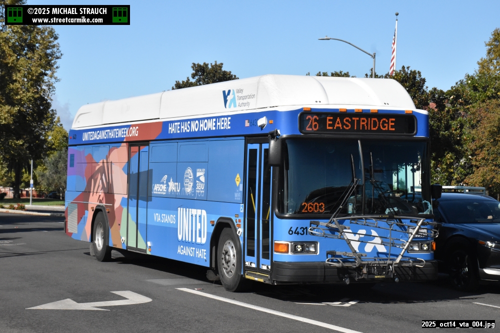 Gillig 6406 (Pride) on the 60 and 6431 (VTA Stands United Against Hate) on the 26. Also got two Capitol Corridor trains